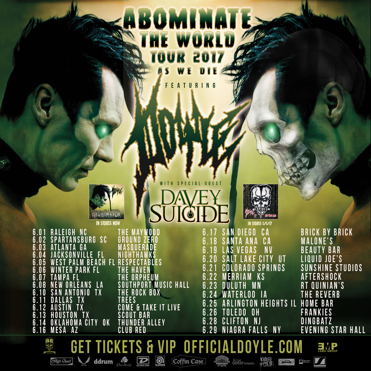 We are excited to share the news that Doyle Wolfgang Von Frankenstein has announced the upcoming Abominate The World Tour 2017. The tour will launch June 1st in Raleigh, NC and also feature Davey Suicide. Check out the tour dates below: