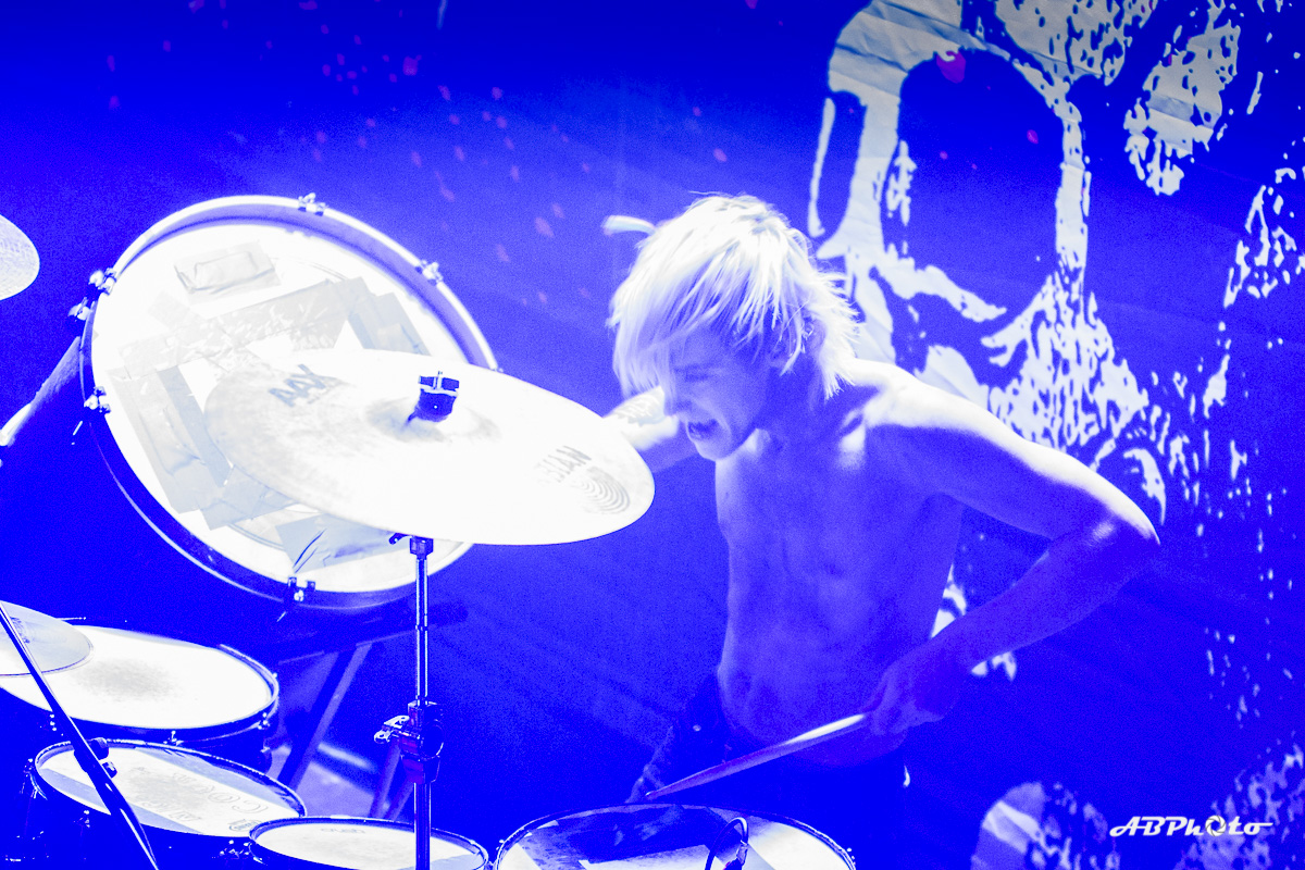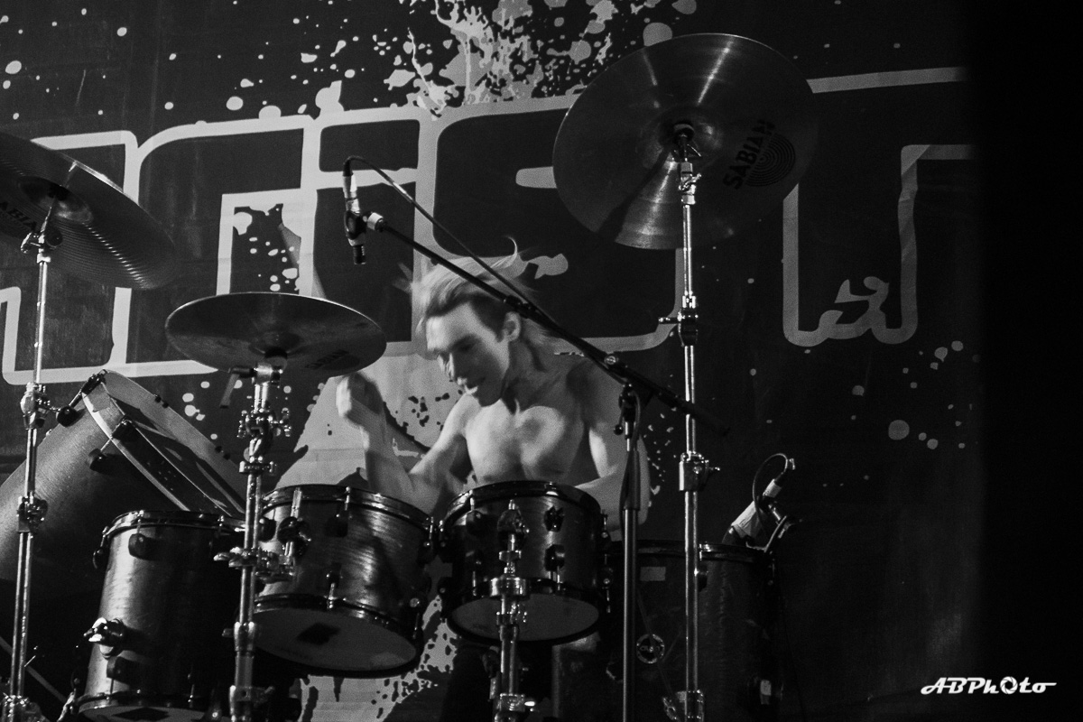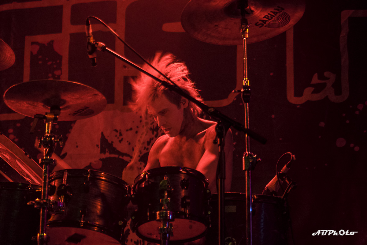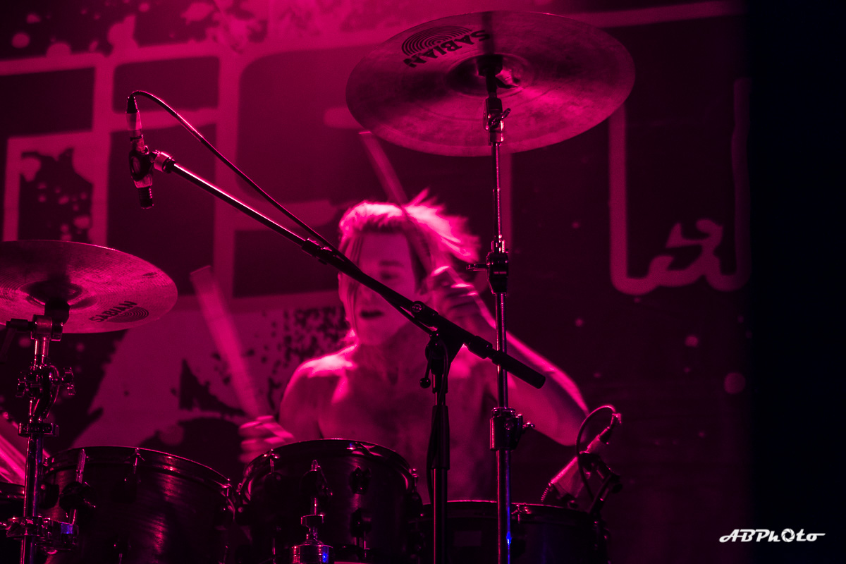 Finally, Combichrist hit the stage at around 10 pm. At the moment we experience really hot summer days, but believe me, the temperature inside rose from hot to sauna in no time. If you’ve seen this band live before, you probably know that they never disappoint with their performance. You just can’t escape the steady two drums beat of Joe Letz (‘the female drummer with the colorful make-up’ as one German print press wrote) and Nick Rossi. Add the rock component with Eric Michael on guitar, some keyboard (Elliott Berlin) and synth parts and on top a charismatic frontman like Andy LaPlegua. Over the last years Rock elements were added to their Electro/Techno sound. A change that wasn’t welcome with every fan of the earlier years. The addition of Rock elements in my opinion opened their music to a wider audience. I’ve seen them a few times live now and every time it was a party, with people jumping, dancing and singing. Not exception this time.