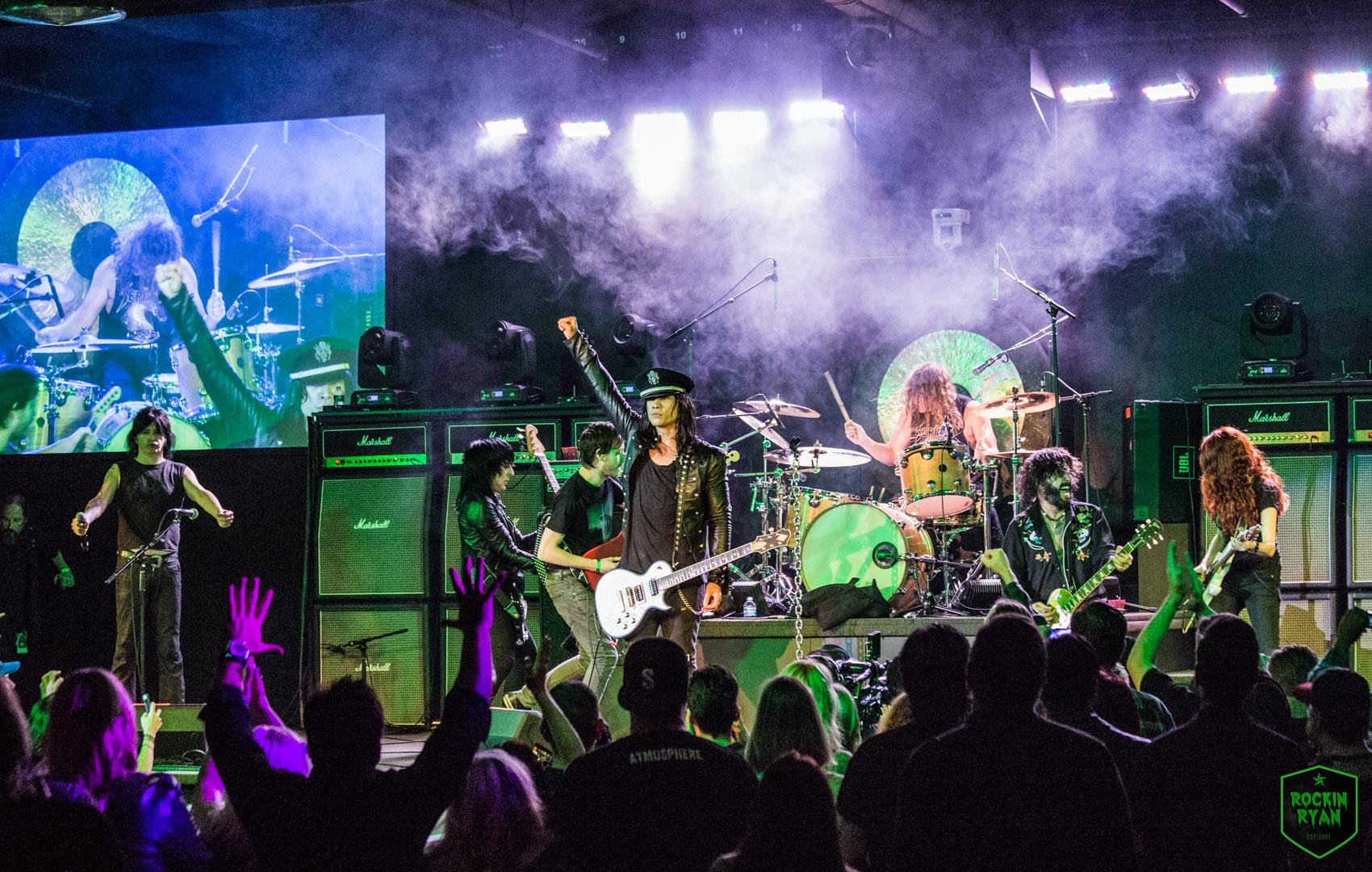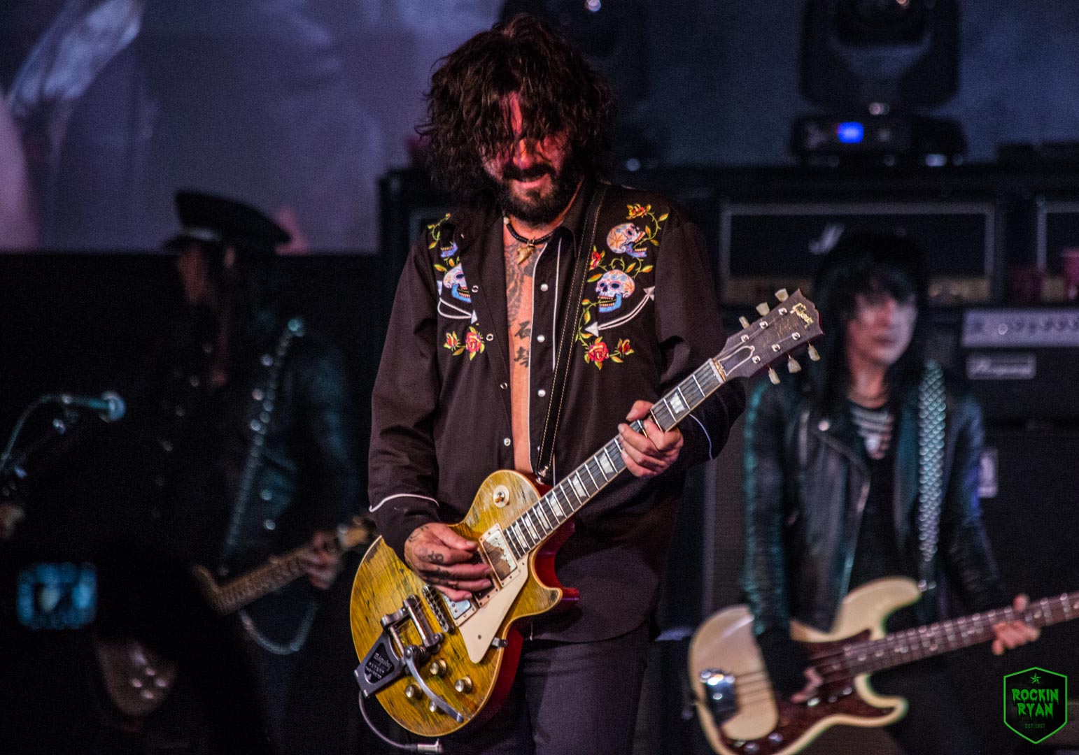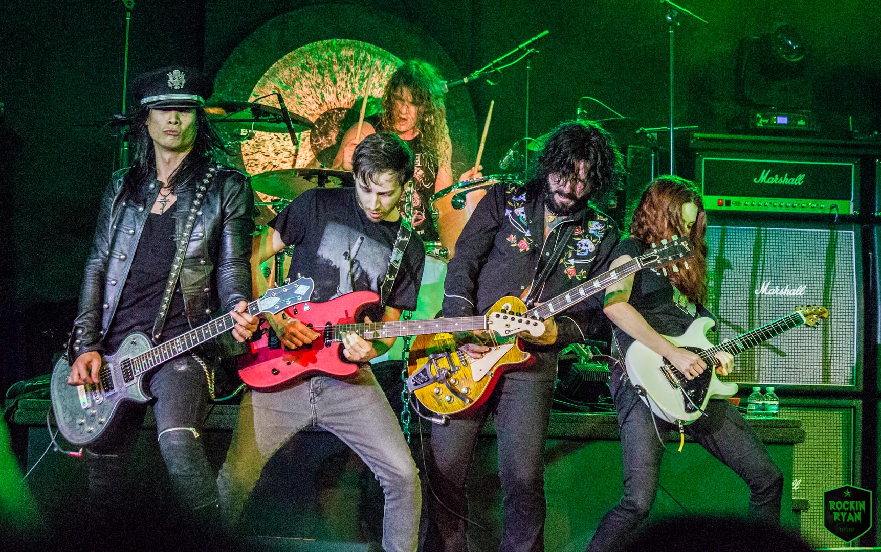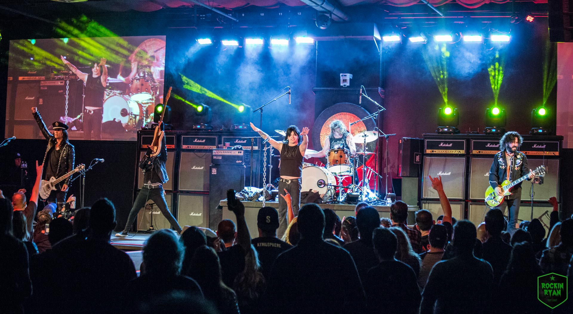 L.A. Guns rocked the venue hard and heavy and it was one hell of a high energy set! The night consisted of non-stop L.A. Guns hits as well as treating the fans to some new songs that became instant fan favorites. Tracii wowed the crowd as he brought out his bow and theremin, highlighting his fast past paced guitar picking and precision playing. Phil’s voice had you thinking you stepped into a time machine, he sounded just like the original records. His energy grew with the crowd’s excitement and have everyone rockin. Johnny Martin on bass, looking bad ass, as if he just stepped out of CBGB’s in NY, treated the crowd to his ferocious basslines and backing vocals. Rocker extraordinaire Michael Grant was racing around on stage, fists in the air and getting the crowd fully pumped. He rocked his guitar, heavy and hard and didn’t let up until the last note. Shane Fitzgibbons was a madman on drums, his grand personality shining through his theatrics. We also want to mention the special treat of Gretchen Menn and Daniele Gottardo. It was definitely a show to remember as the crowd raved about it as they were leaving. Check out photos of their set by our Rockin Ryan: