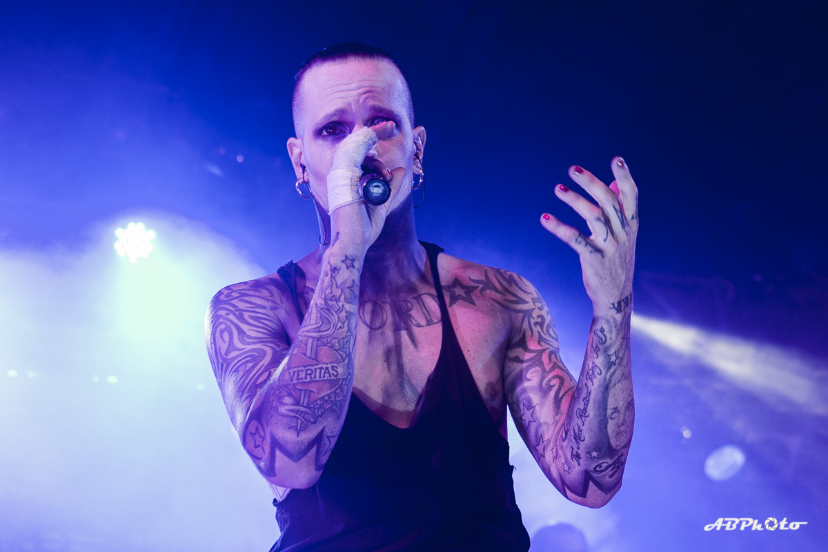Special guest and support act was Scarlet Dorn. They just released their first album called ‘Lack Of Light’, which has been produced by Chris Harms and Benjamin Lawrenz. Scarlet Dorn had their first stage appearances on the 2017 tour of Lord Of The Lost. Due to fans’ demands, they took them out on the road again on this run. Other ties to Lord Of The Lost are their keyboarder Gared Dirge, who plays for both bands and members of Scarlet Dorn are also part of LOTL’s road crew. It’s one big family. Scarlet Dorn, the singer and namesake of the band, got discovered by Chris Harms and Benjamin Lawrenz from Chameleon Studios in Hamburg. She participated in a band contest and her performance left some impression, so the two decided to promote her talent. The music of the band is dark, melancholic and smooth, so it was a slow start into the night, but nevertheless a charming one.