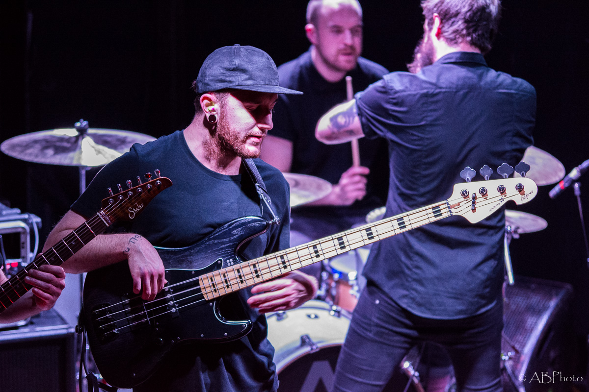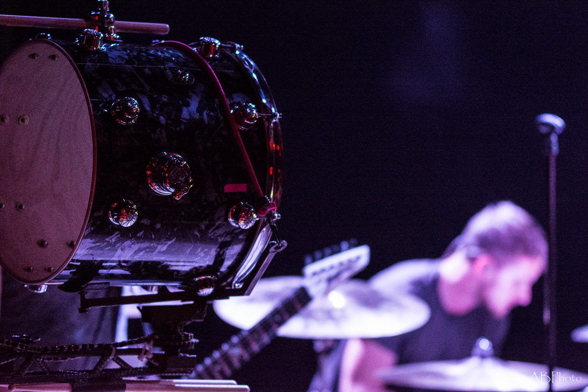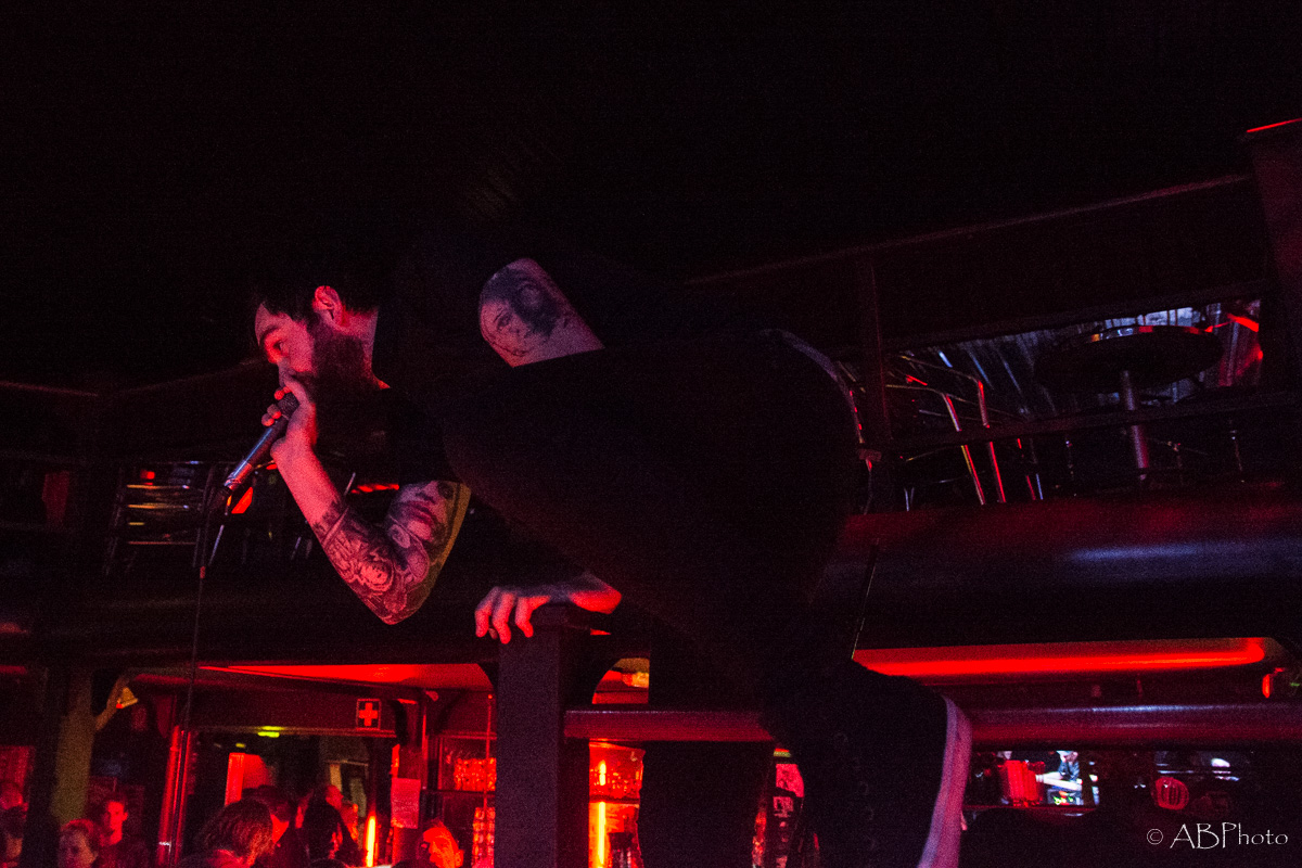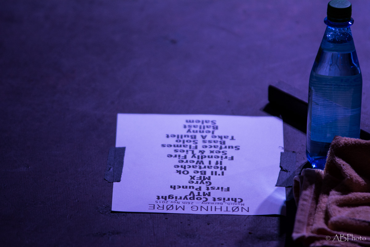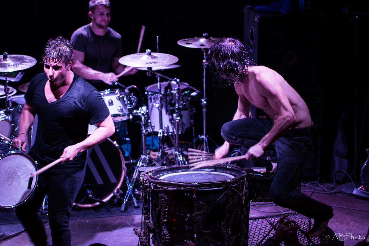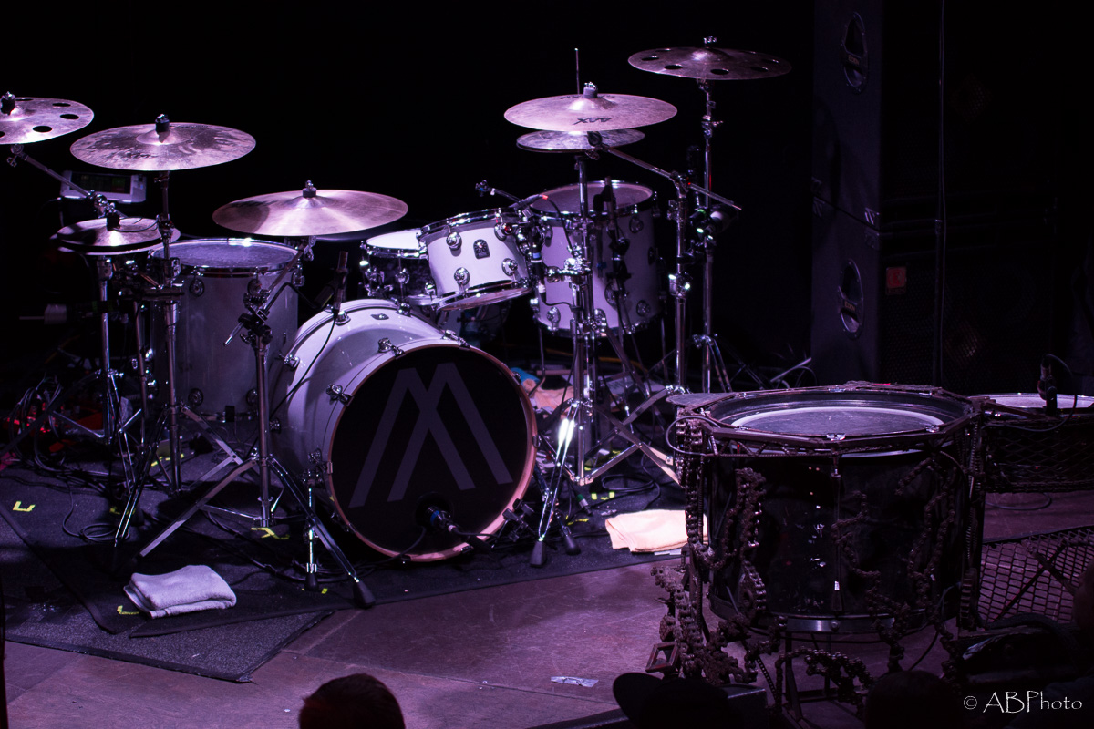 At about 10 pm Nothing More climbed the stage. Just so you get the picture. The club they played is really small. There were app. 150 people there last night, so compared to the shows NM plays in the US by now, it’s a very small and intimate place to play. One of my fave small clubs though in Munich. You’re really close to the band and for both parties it’s far easier to make a connection. So despite the size of the club and therefor of the stage, they fit everything on stage like they do when they’re playing at home. The amazingly looking additional drums on stage, the bass rig that’s added to it during the final song of the night. It’s not only music they play, it’s an awesome visual show as well. Just some weeks ago the band had a lineup change, so they brought along their new drummer Ben Anderson, who blended in well. The majority of the songs they played were taken from their 2014 released self-titled record, like ‘Here’s To The Heartache’, ‘I’ll Be OK’, ‘First Punch’ and ‘Jenny’, to name a few. My personal highlights were the parts where Jonny, that started out in the band as a drummer actually and switched to vocals a few years later, plays the ‘Mad Max’ looking additional drums. Add the bass later in the set and it’s mainly rhythms for some time which sounded pretty powerful. The announced final song of the night stayed the final one. Nice change to the usual endings of the shows with the crowd chanting for one last song. Jonny promised they’d give it their all in that last song and they did! In fact they played their heart and soul out during every single song that night. All in all Nothing More played a 90 minutes set, which is really rare these days.