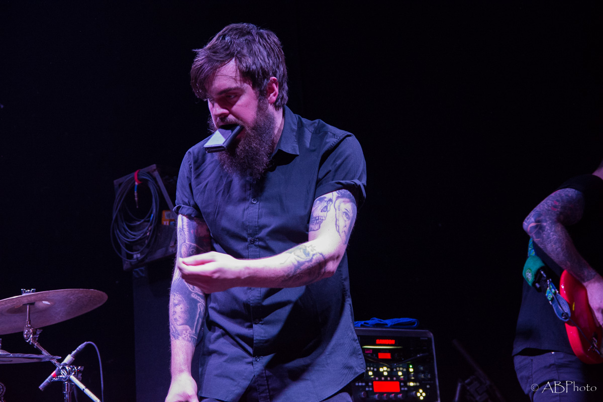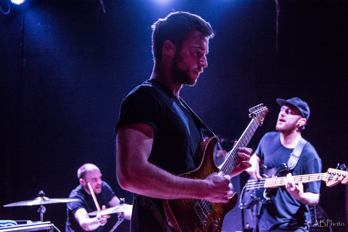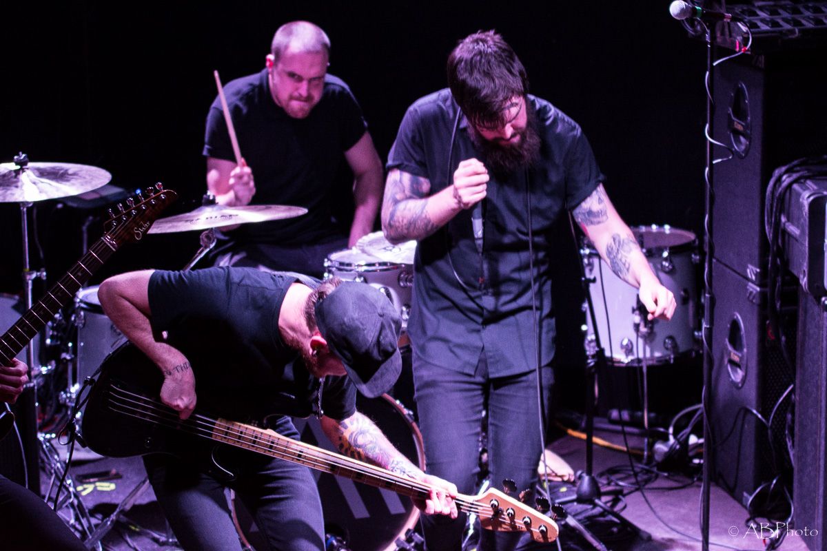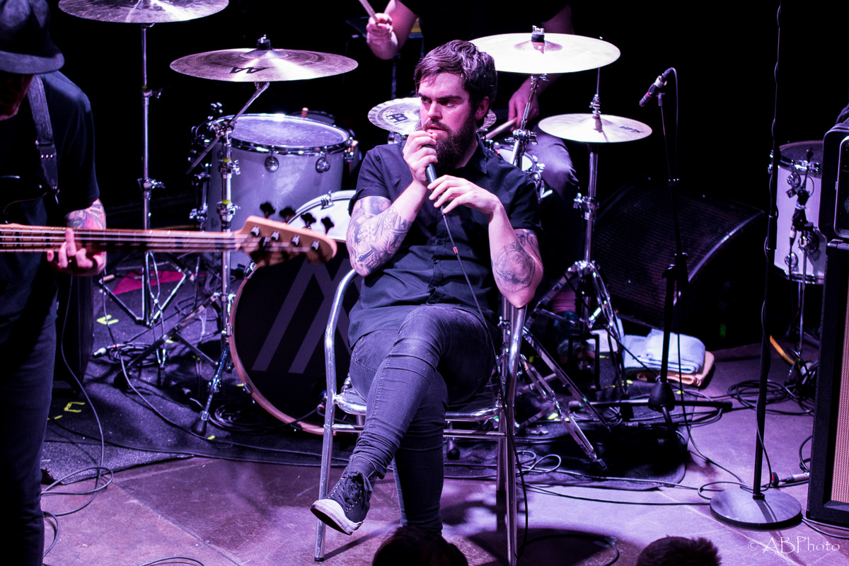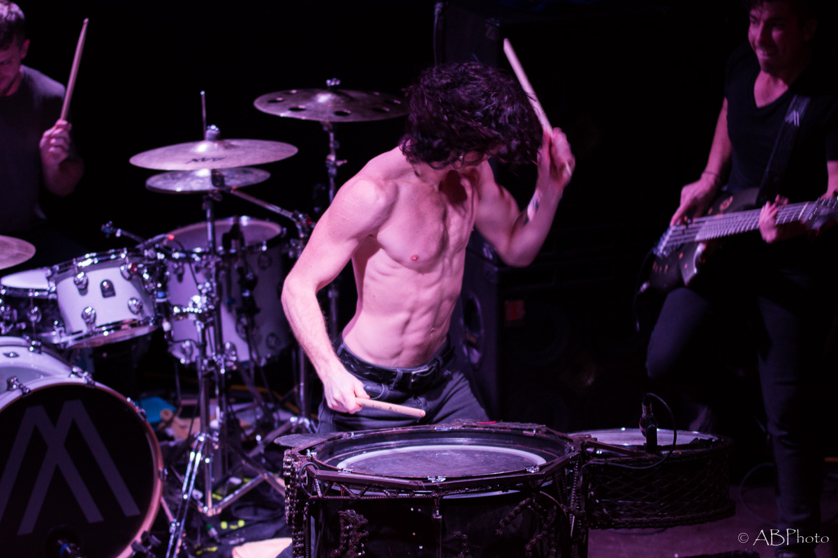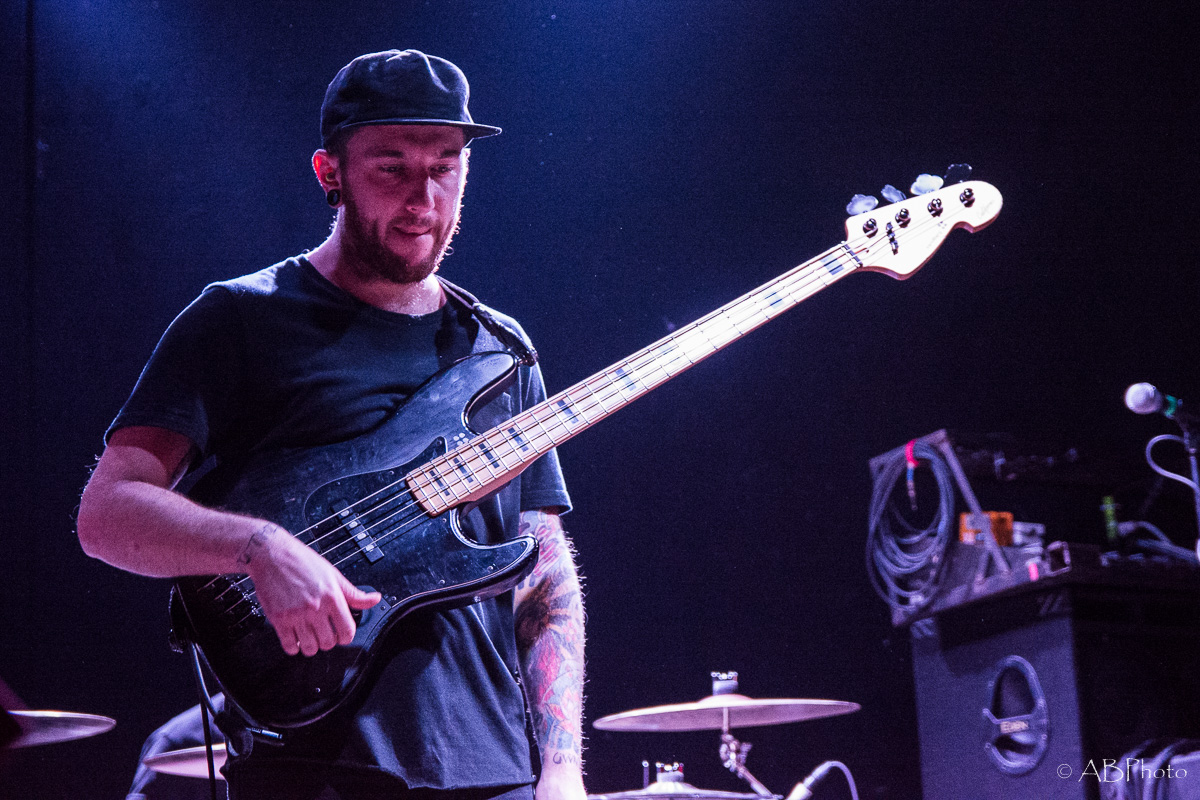 At about 10 pm Nothing More climbed the stage. Just so you get the picture. The club they played is really small. There were app. 150 people there last night, so compared to the shows NM plays in the US by now, it’s a very small and intimate place to play. One of my fave small clubs though in Munich. You’re really close to the band and for both parties it’s far easier to make a connection. So despite the size of the club and therefor of the stage, they fit everything on stage like they do when they’re playing at home. The amazingly looking additional drums on stage, the bass rig that’s added to it during the final song of the night. It’s not only music they play, it’s an awesome visual show as well. Just some weeks ago the band had a lineup change, so they brought along their new drummer Ben Anderson, who blended in well. The majority of the songs they played were taken from their 2014 released self-titled record, like ‘Here’s To The Heartache’, ‘I’ll Be OK’, ‘First Punch’ and ‘Jenny’, to name a few. My personal highlights were the parts where Jonny, that started out in the band as a drummer actually and switched to vocals a few years later, plays the ‘Mad Max’ looking additional drums. Add the bass later in the set and it’s mainly rhythms for some time which sounded pretty powerful. The announced final song of the night stayed the final one. Nice change to the usual endings of the shows with the crowd chanting for one last song. Jonny promised they’d give it their all in that last song and they did! In fact they played their heart and soul out during every single song that night. All in all Nothing More played a 90 minutes set, which is really rare these days.