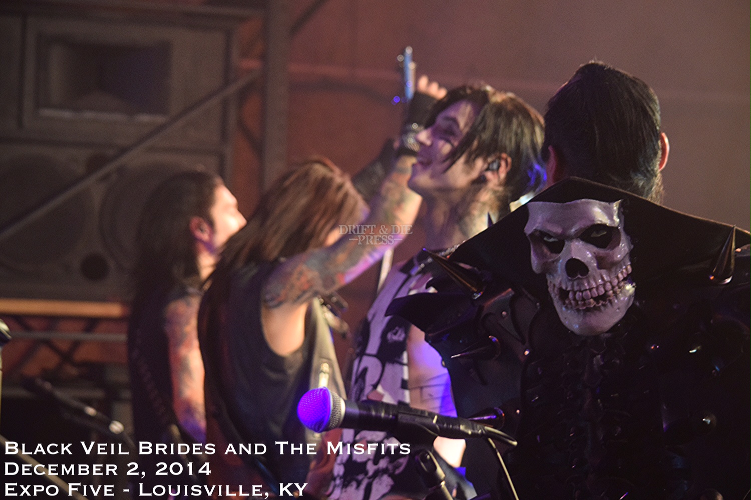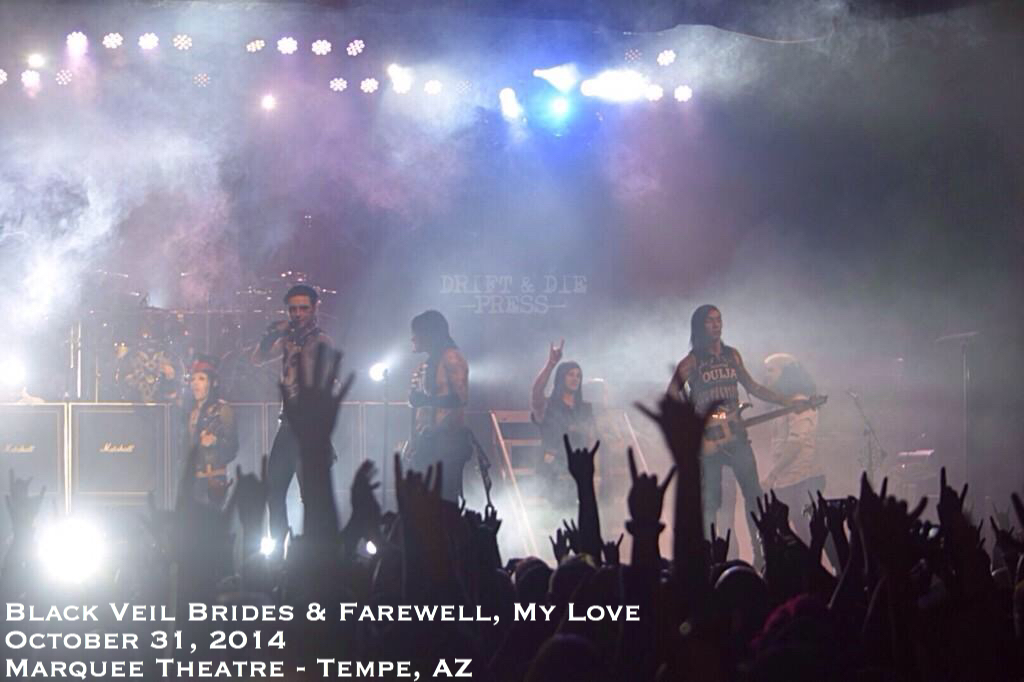 Go to a Black Veil Brides show, and you never know what to expect! From Farewell, My Love storming the stage during “Fallen Angels” in Phoenix, to The Misfits’ Jerry Only and Jerry Jr accompanying the band for a few songs in Louisville, not one performance will be the same. Drift N Die was lucky enough to accompany BVB on a few dates of Black Mass Tour.