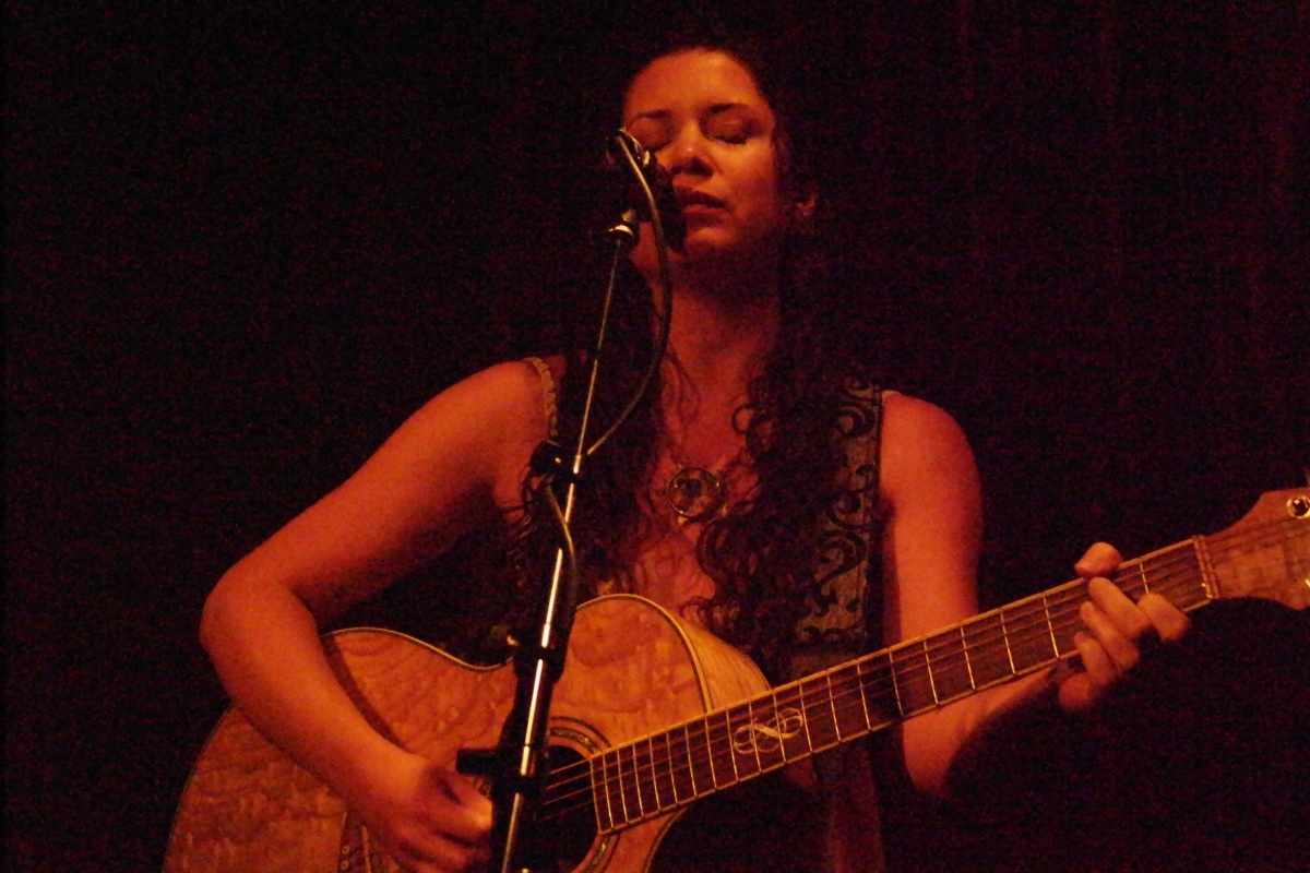 Back to the guitar and while re-tuning she told us about some of the darker days in her travels, including being harassed in a park in Dublin and treated rudely in some Irish clubs. That of course led to a song – which she assured us may sound like she is down on men, but she’s not really. Good thing she told us –“Feet Keep Moving” does start off with a rainy tale of sleeping on couches and putting up with jerks, but as she promised, ends well enough for a girl who has to sing for her supper every night.