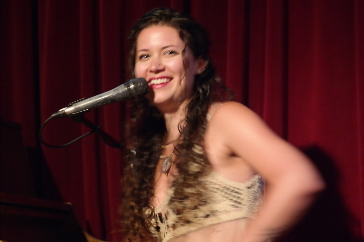 After “The Stubborn Song”, Scholz moved to the piano, arranged her floor length gown and sheer midriff over an folksy white knit halter, and told us a bit about her European Adventures. “I am a woman travelling alone with a guitar case,” she said, “and I’m OK with that.” Then she turned to the piano and blew us away with a new song, “Give Me One More Day”, with a razor edge to her voice that I have not heard before. This was real pain, need, a cry of desperation that lanced through us. This was a knife to the heart that her albums and previous performances hinted she was capable of, but not with this power.