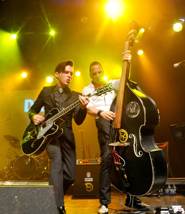 Following the first act was Drake Bell and his band, whose performance was nothing short than epic! Bell launched into the 50s blues infused guitar rockin’ “King of Rock N’Roll.” This was a fitting opener for them. Just imagine if Elvis Presley had joined the Beatles– that’s Drake Bell and his band!