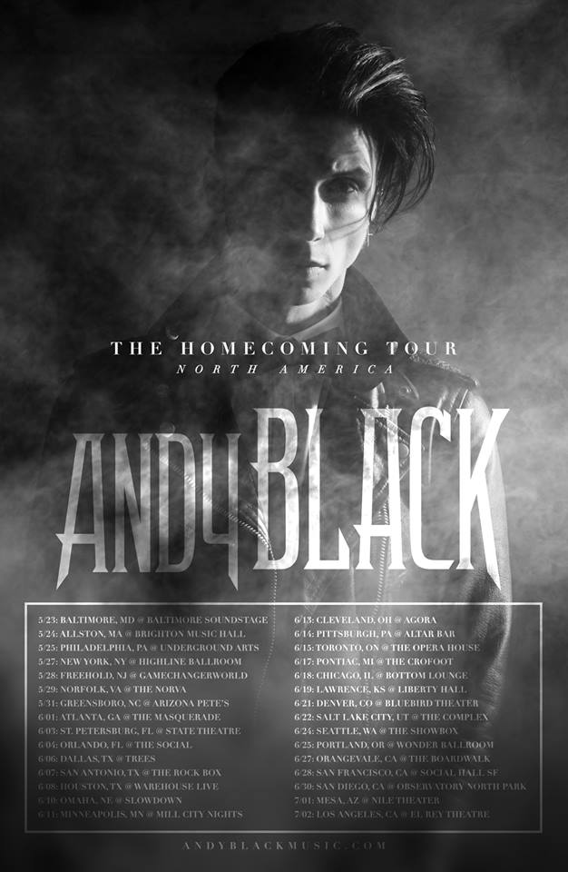 Just shortly after revealing the first tour dates of Andy Biersacks first solo tour under the moniker Andy Black, today tour dates for North America were announced. The tour starts out May 23rd at the Baltimore Soundstage in Baltimore, MD and goes on throughout June. Last date will be Los Angeles, CA at El Rey on July 2nd.