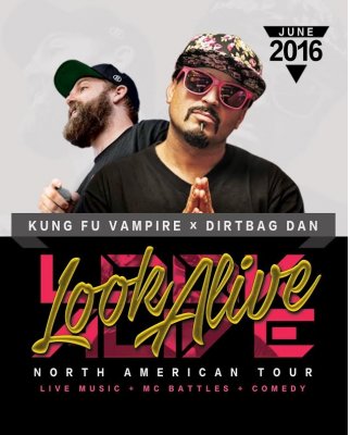 San Jose, California’s Kung Fu Vampire has announced the dates for his upcoming Look Alive Canadian tour with legendary Battle Rapper and Bearded Comedian Dirtbag Dan. The tour kicks off on June 6th in Portland, OR and will travel all the way across Canada, making their way back around to Denver, CO where part 1 of the tour will wrap-up on June 30th, 2016. Kung Fu Vampire will be giving Canadian fans the first taste of his new album “Look Alive”, which is slated to be released later this summer featuring Twiztid, Brotha Lynch Hung, ¡Mayday!, Locksmith & more.